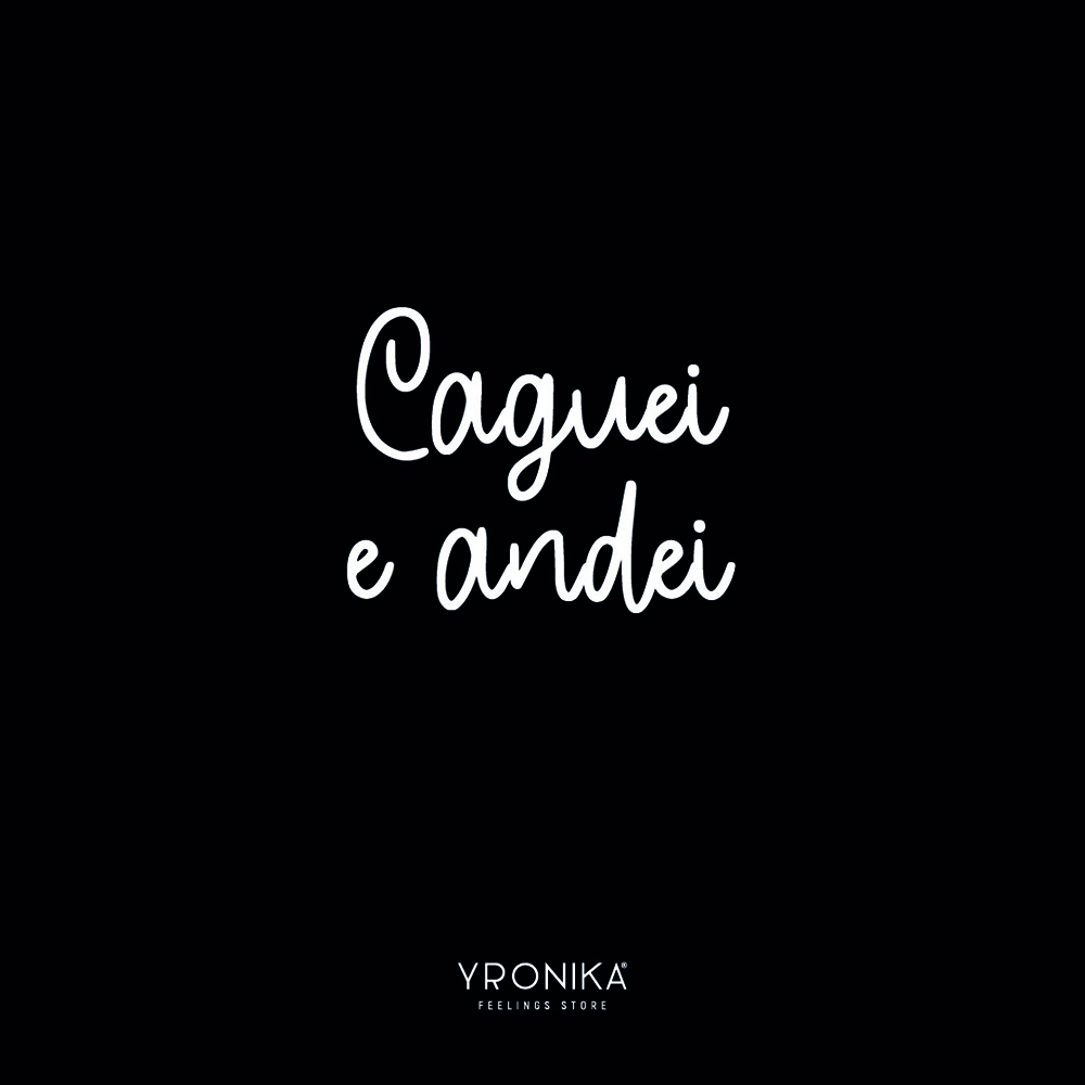 Texto em branco sobre fundo preto com a frase 'Caguei e andei' e a marca 'YPRONIKA FEELINGS STORE'