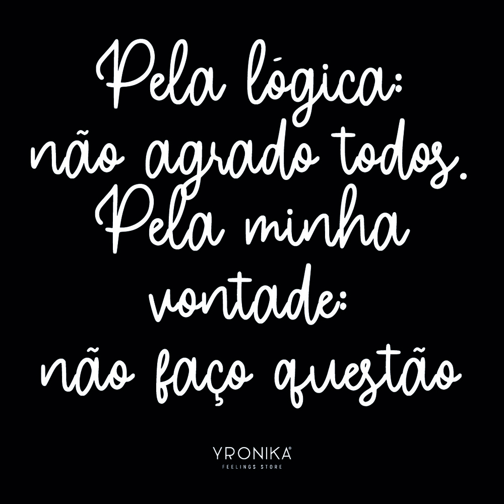 Texto branco em fundo preto com citação e marca YRONIKA Feelings Store